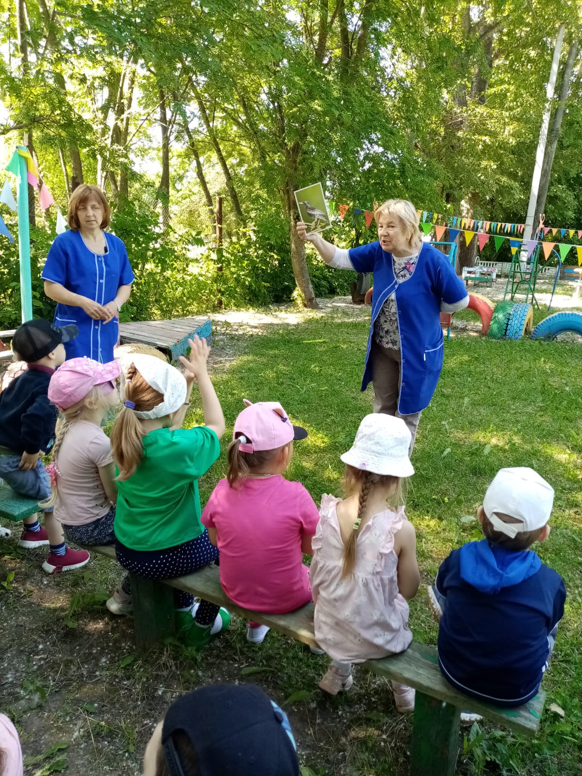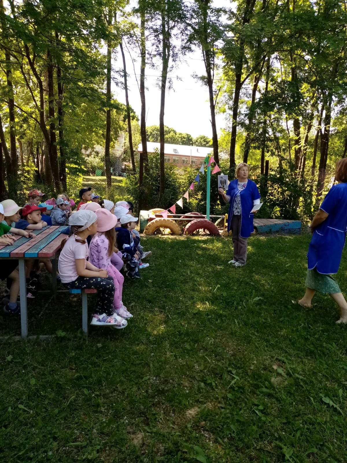 В рамках недели здоровья Рябинкины ребята ходили в поход зп здоровьем. В начале похода повторили правила поведения в лесу. Зарядились энергией с помощью ритмической гимнастики. В походе закрепляли знания о растущих деревьях на территории сада, наблюдали за птицами. Отметили разнообразие животного мира. Потрудились: собрали мусор. Посетили на "поезде" огород: узнали сколько витаминов на нем "растет". Преодолевали препятствия, помогая друг другу и наконец добрались до места "с живой водой". И даже успели позагорать. Поход прошел с пользой для здоровья. Всем очень понравилось.
