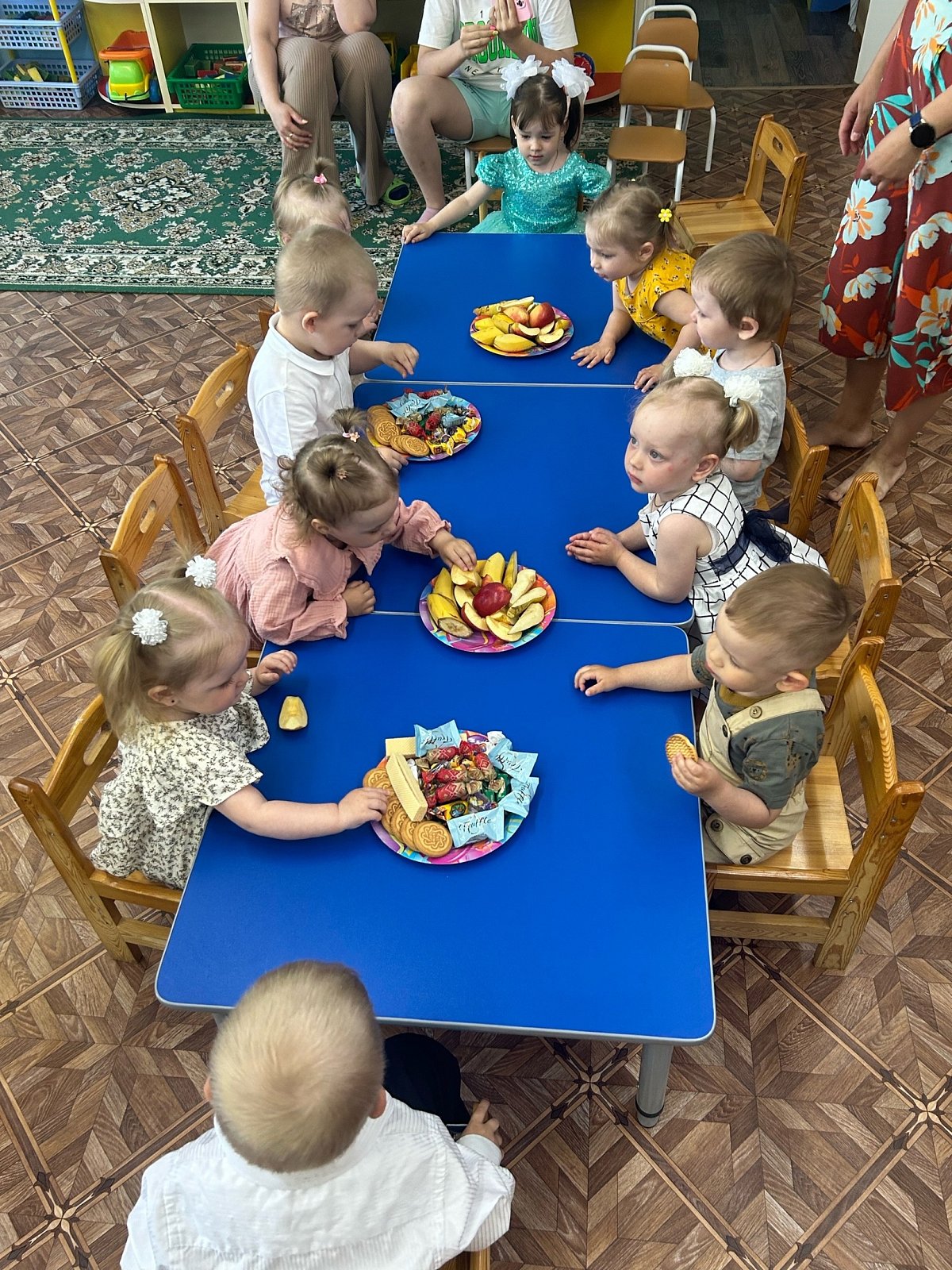В нашей группе "Капитошки" прошёл весёлый праздник - это выпускной из ясельный группы. Время пролетело незаметно. И наши дети подросли и из маленьких плаксивых малышей превратились в самостоятельных ребят. И вот настало время проводить из ясельный группы в младшую. Для ребят, совместно с родителями мы устроили праздник. Ну и конечно что за праздник без гостей. В гости на веселье заглянуло Солнышко. Время развлечения пролетело быстро - было мне улыбок и веселья, песен, танцев игр. Впереди наших любимых деток ждёт ещё очень много нового и интересного, захватывающего. Вероятней всего большинство детей забудут этот праздник, но всю дальнейшую жизнь в семейном альбоме будут храниться фотографии с этого весёлого с одновременно грустного праздника. С огромным сожалением мы расстаёмся не только с ребятами, но и с их родителями. Дорогие родители, спасибо Вам за Ваших детей!!!