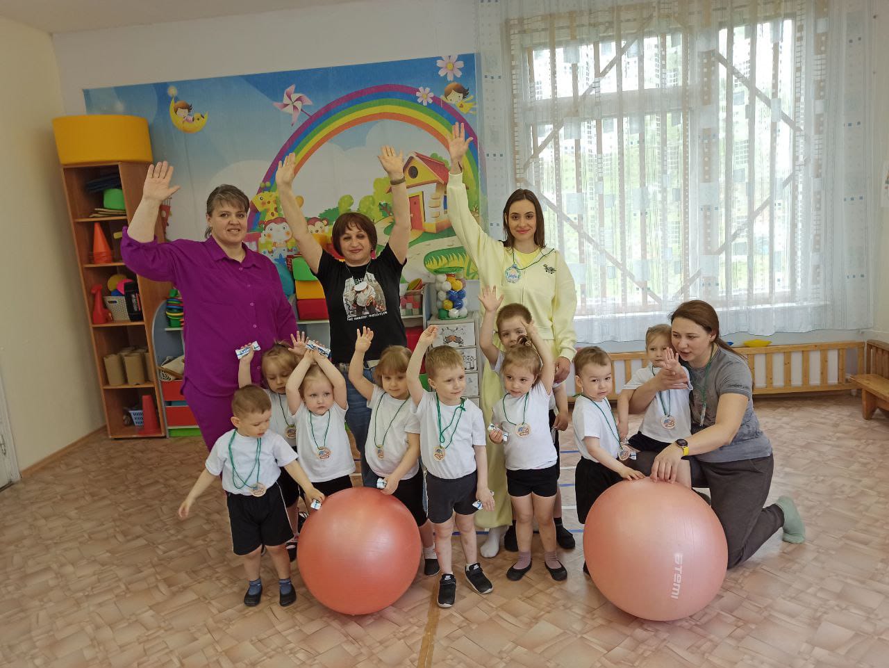 Здоровый образ жизни должны вести все члены семьи. Ведь родители являются примером для подражания. В группе "Смешарики" 12.05.2025 прошло развлечение "Самая дружная спортивная семья". Развлечение прошло на одном дыхании. Команды проявили ловкость, силу, выносливость, показали дружную работу в различных эстафетах. Победила дружба. Команды были награждены медалями и сладкими призами.