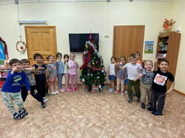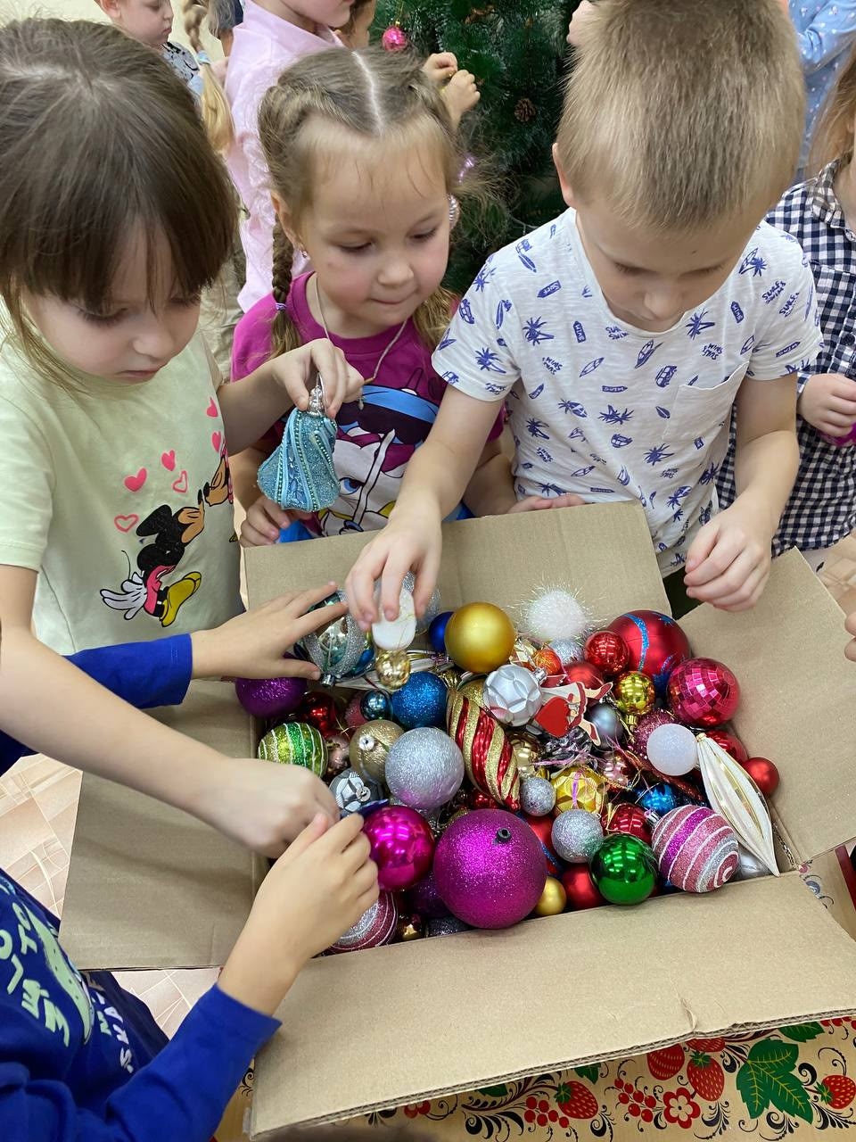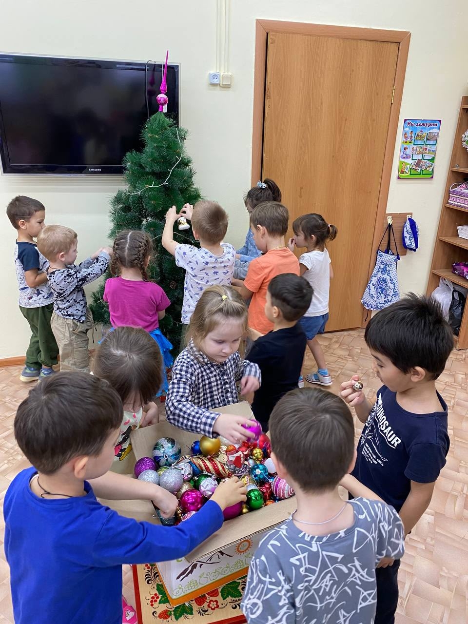 группа "Затейники" готовятся к Новому году. Самостоятельно наряжают елку.